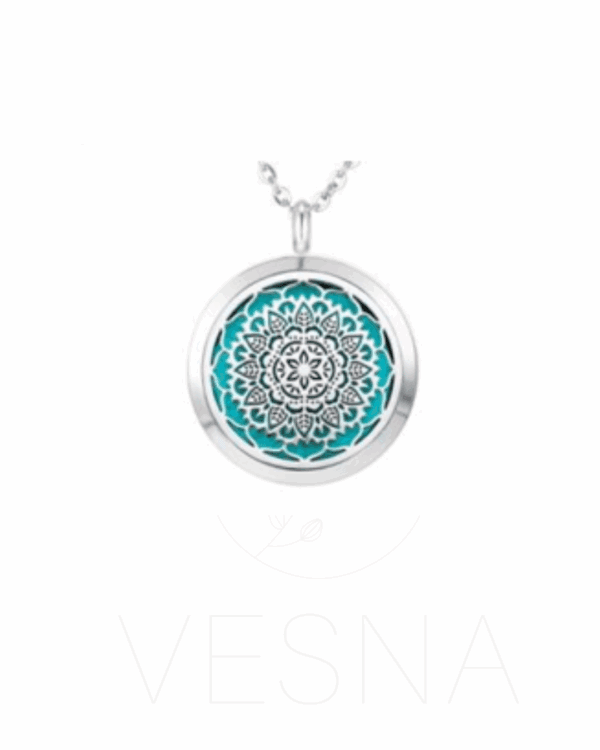 Wisiorek do aromaterapii w kolorze srebrnym.